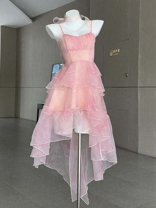 Sweet Pink Birthday Party Dress Strapless Layered High Low Homecoming Dress TP2028