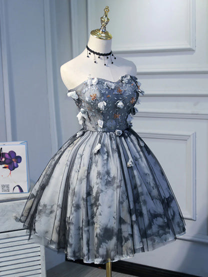 Black Short Prom Dresses, Black Cute Puffy Homecoming Dresses TP37