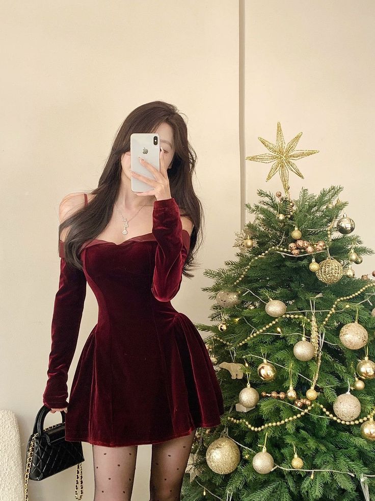 Burgundy A-line Off-shoulder Long Sleeve Velvet Mini Party Dress Homecoming Dress TP2091