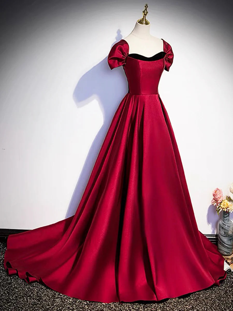 Burgundy Satin Strapless Prom Dress, Simple A-Line Party Dress with Detachable Sleeve TP194
