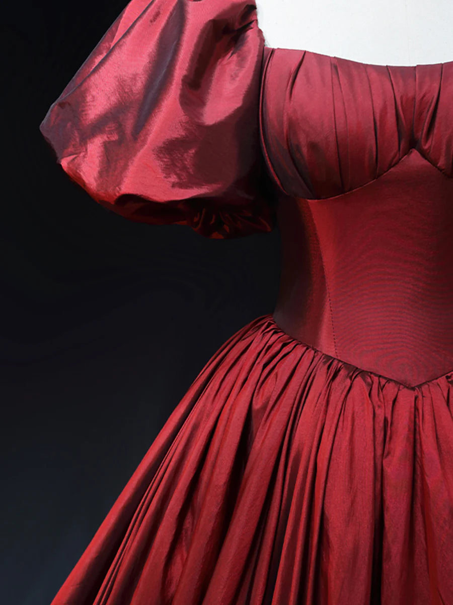 Burgundy Scoop Short Sleeves Party Dress, A-Line Long Evening Dress Prom Dress TP252
