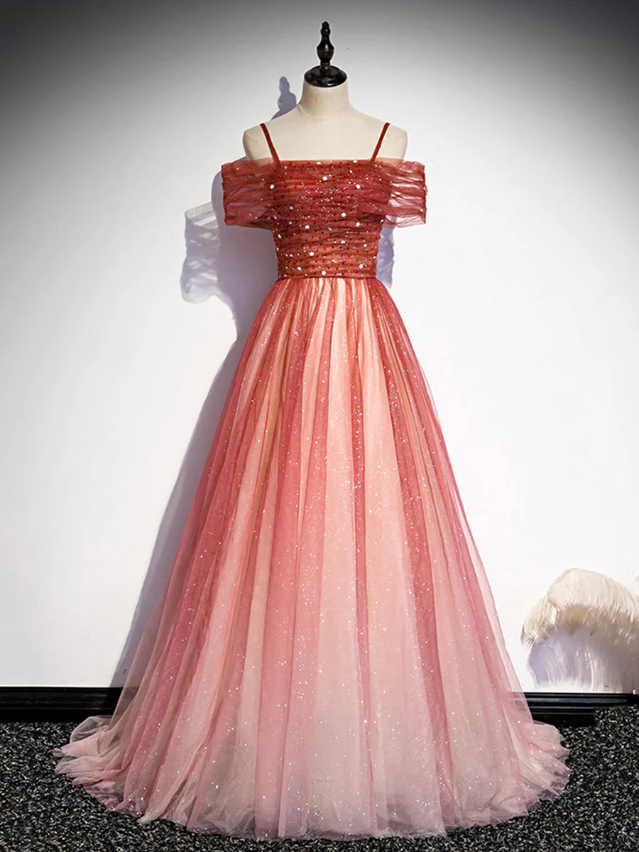 Burgundy Tulle Long Prom Dress, A-Line Off Shoulder Evening Dress TP359