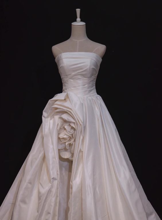 Chic Light Pink Satin Strapless A-Line High Slit Evening Gown Prom Dress TP5260