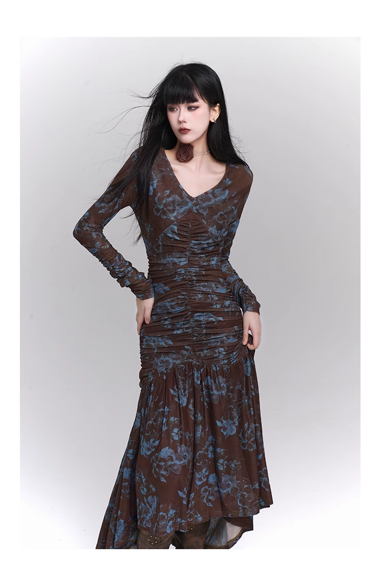 New Fashion Design Floral Pattern Women Long-sleeved Dress TP2946