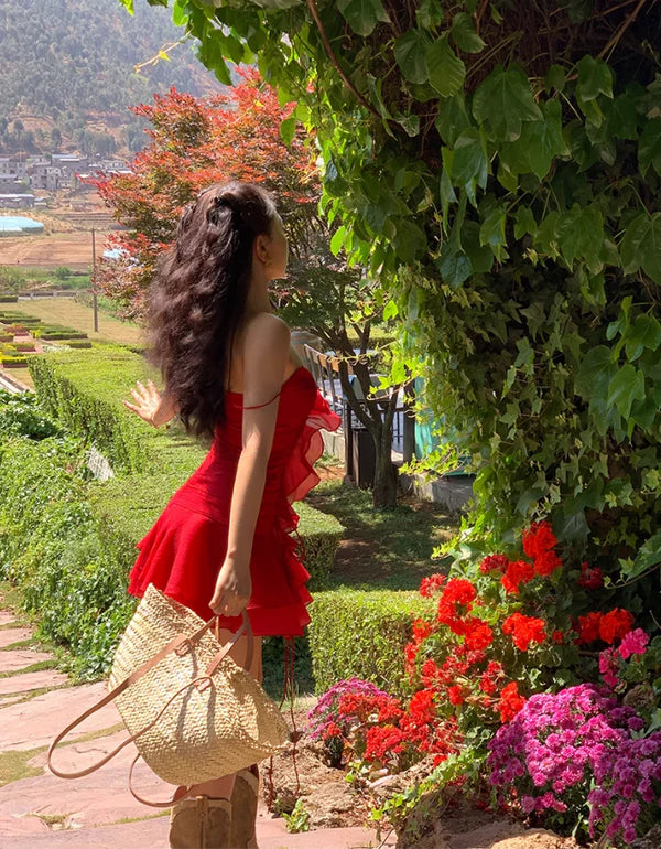 Cute Red Sweetheart Spaghetti Strap Short A-Line Chiffon Party Dress Cocktail Dress Homecoming Dress TP4430