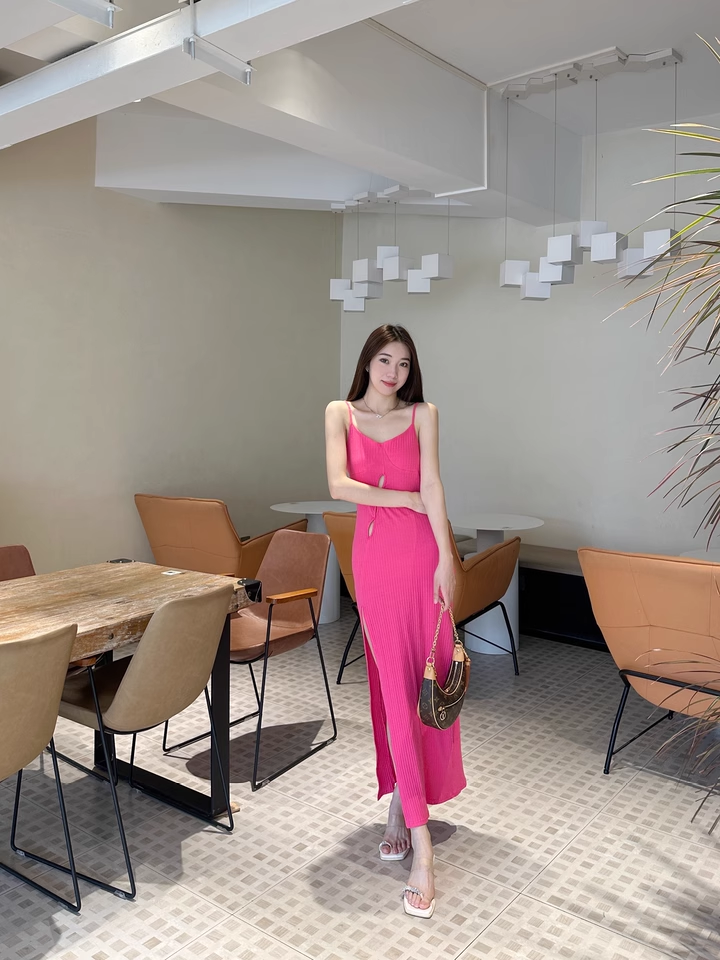 New Fashion Casual Rose Pink Sleeveless Halter Dress TP2976