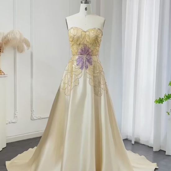 Elegant Ivory Beaded Prom Dress A-Line Evening Gown Satin Party Dress Long Formal Dress TP4774