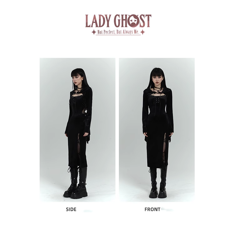Chic Retro Goth Black Velvet Shawl Spaghetti Strap Dress TP2913