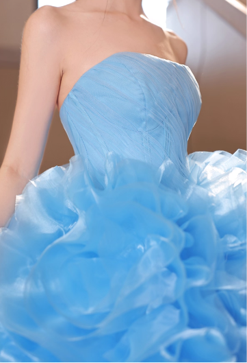 Glamorous Sky Blue Ruffled Tulle Strapless Sweet 15 Quinceanera Ball Gown TP5483