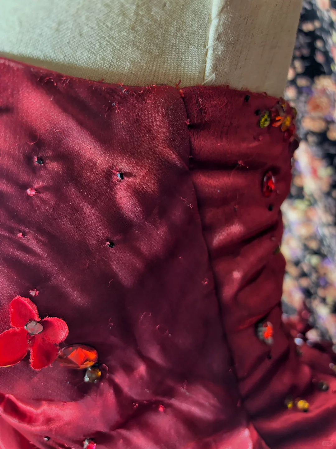 Gorgeous Burgundy Satin Sweet 16 Quinceanera Strapless A-Line Floor-length Prom Dress Birthday Dress Evening Dress Ball Gown TP4386