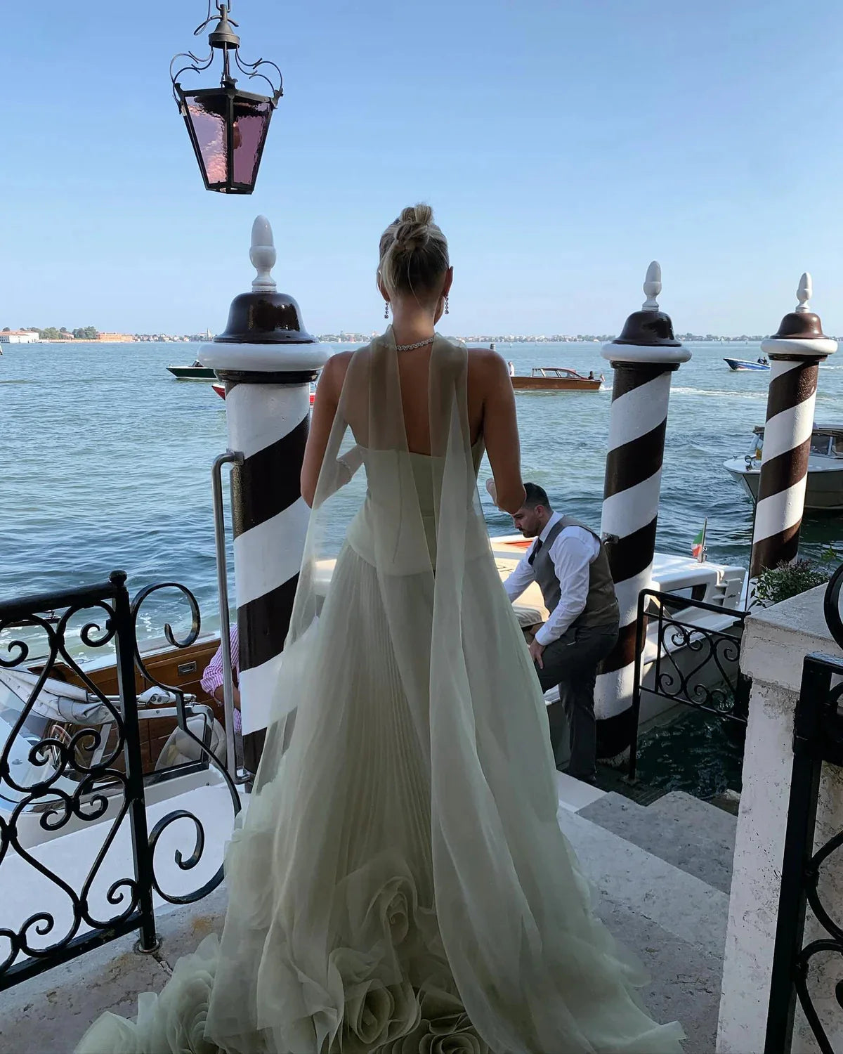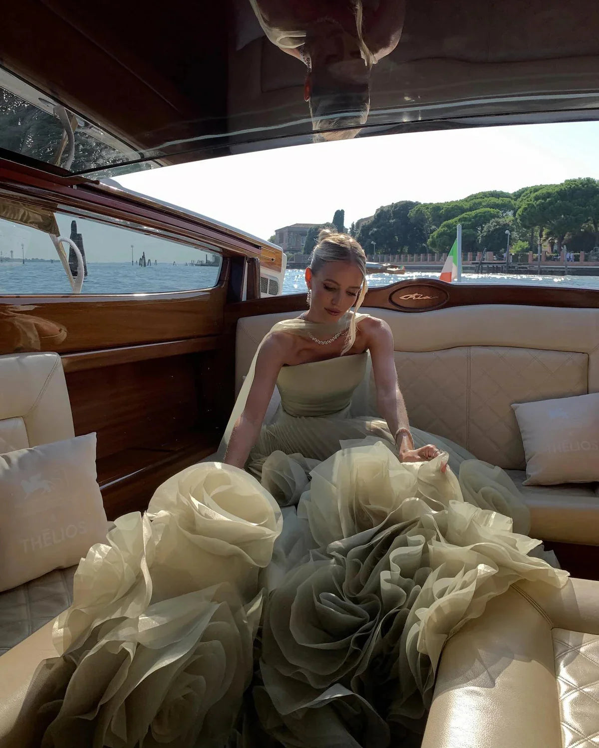 Gorgeous Sage Green 3D Flowers Strapless A-Line Floor-length Prom Dress Evening Dress TP4561