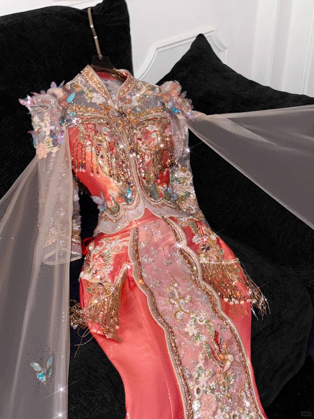 Gorgeous Shiny Beaded Exquisite Embroidery 3D Butterflies Mermaid Floor-length Evening Dress Prom Dresses TP4189