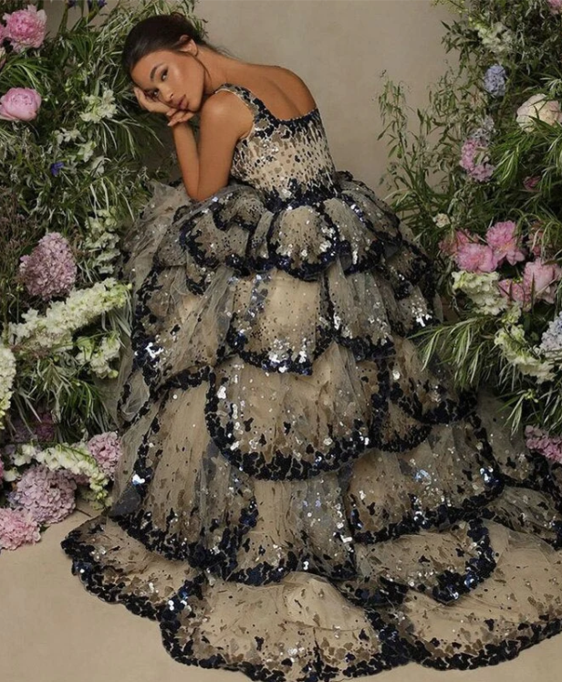 Gorgeous Shiny Sequin A-Line Long Tiered Prom Dress Evening Dress TP4562