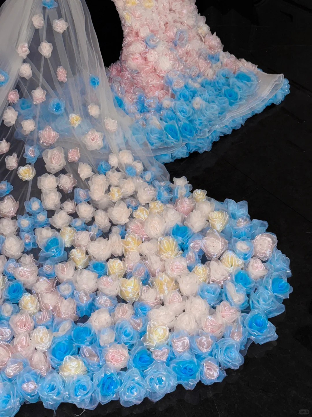 Gorgeous Sparkling Beaded Sequin Mermaid 3D Flowers Design Tulle Evening Dress Prom Dresses TP4159