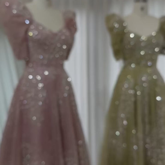 Gorgeous Sparkling Beaded Sequin Short-sleeve A-Line Long Prom Dress Evening Dress TP4557