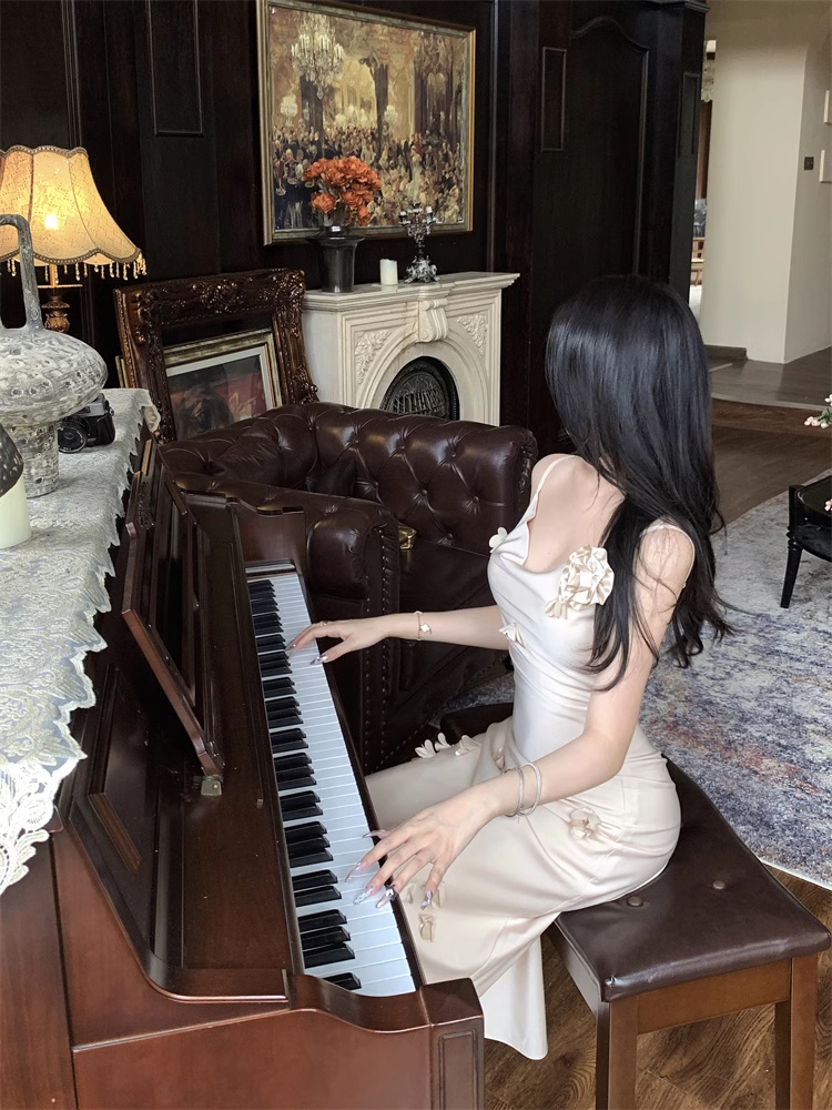New Elegant Three-dimensional Floral Decoration Slim Mermaid Spaghetti Strap Dress TP2969