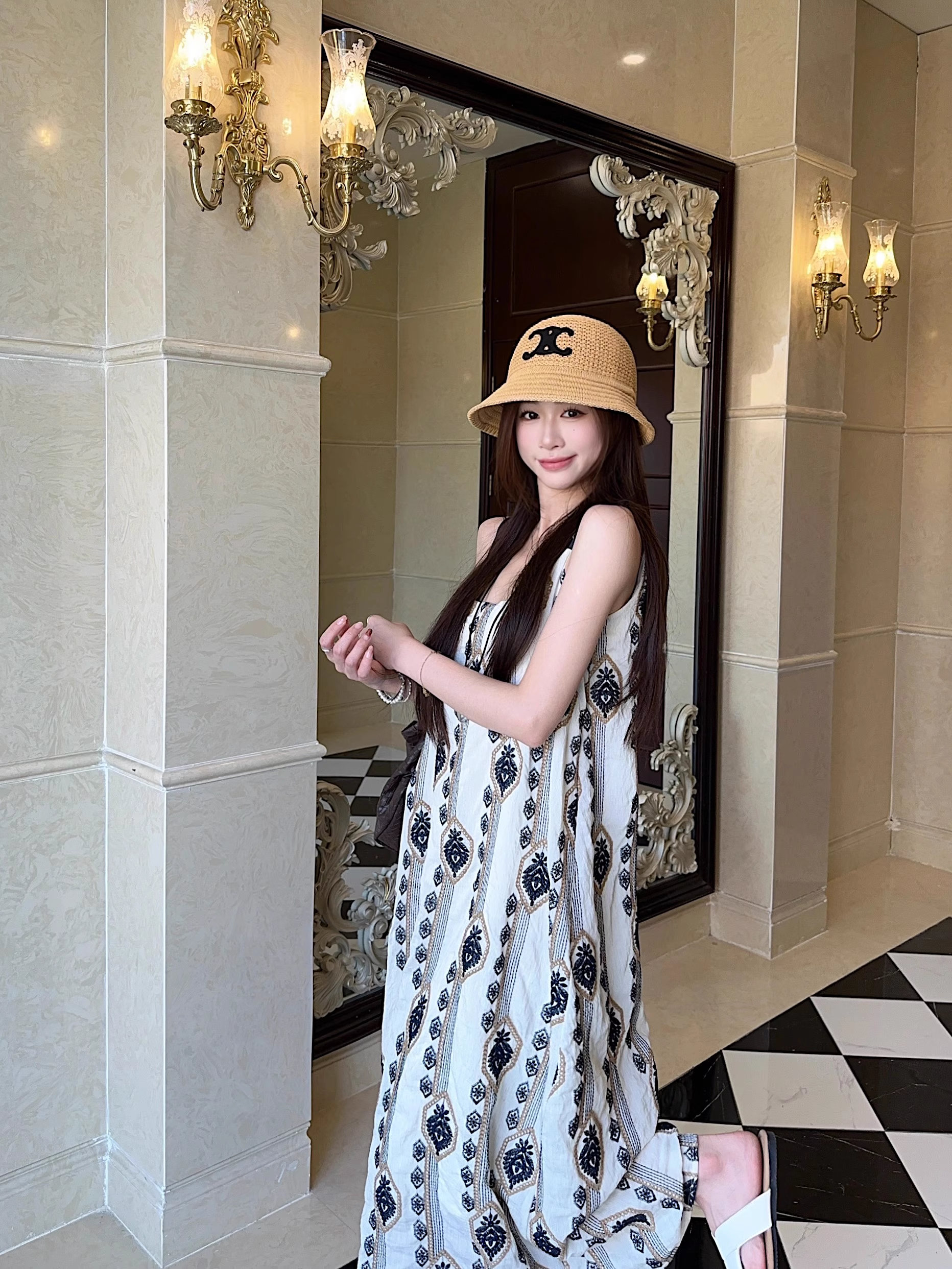 New Fashion Floral Loose-fitting Design Beach Holiday A-line Spaghetti Strap Dress TP3374