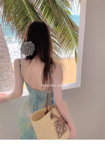 New Fashion Butterfly Design Short Sleeve Casual Spaghetti Strap Dress TP3017