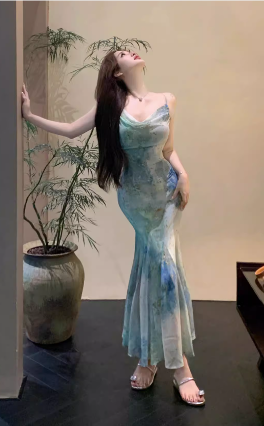 New Stylish Floral Design Elegant Casual Spaghetti Strap Dress TP3018