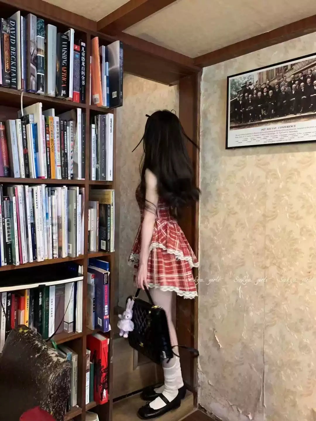 Simple Plaid Ruffled Hem Design A-line Sleeveless Spaghetti Strap Dress TP3305
