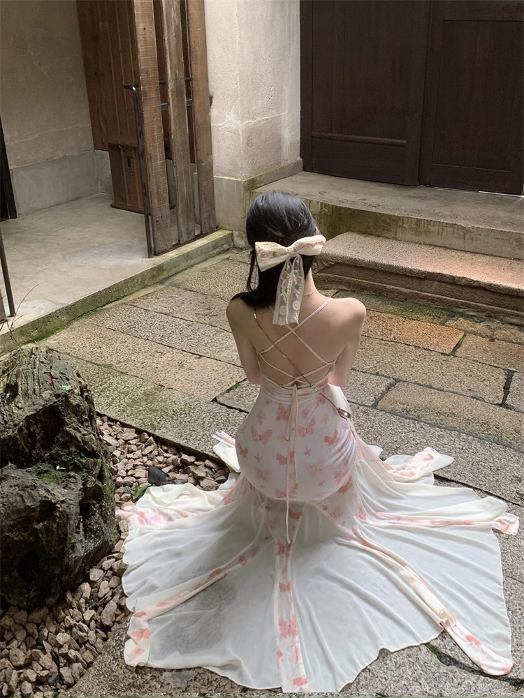 New Stylish Women Pink Butterfly Mermaid Spaghetti Strap Dress TP2966