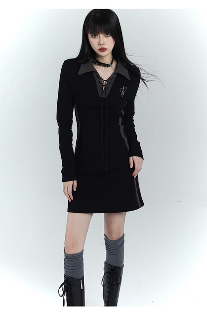 New Fashion Design Sense Short Black Long-sleeved Dress TP2935