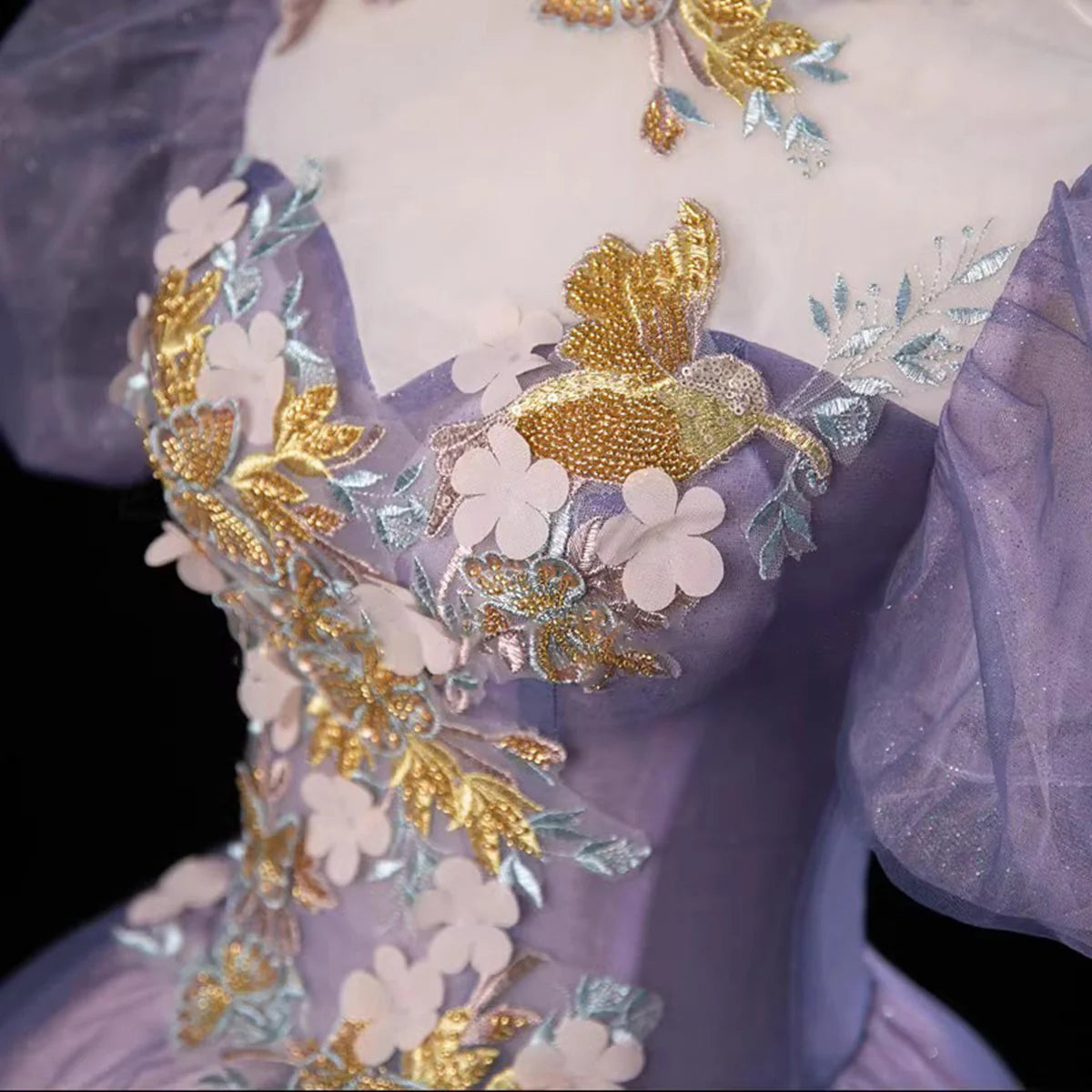 Pink and Purple Tulle Long Party Dress with Beadings, High Neckline Sweet 16 Dress TP1172