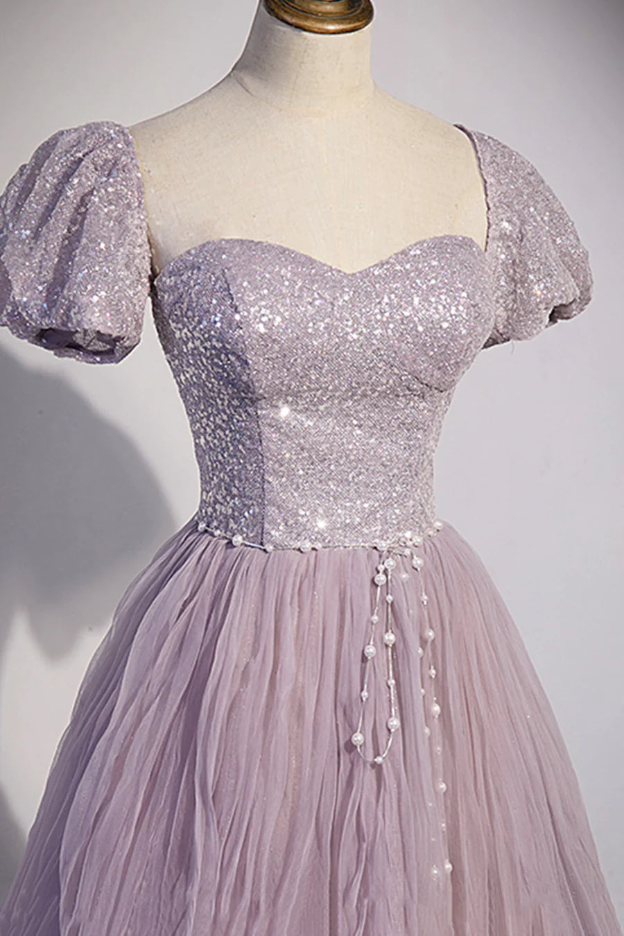 Purple Tulle Sequins Floor Length Prom Dress, A-Line Evening Party Dress TP499