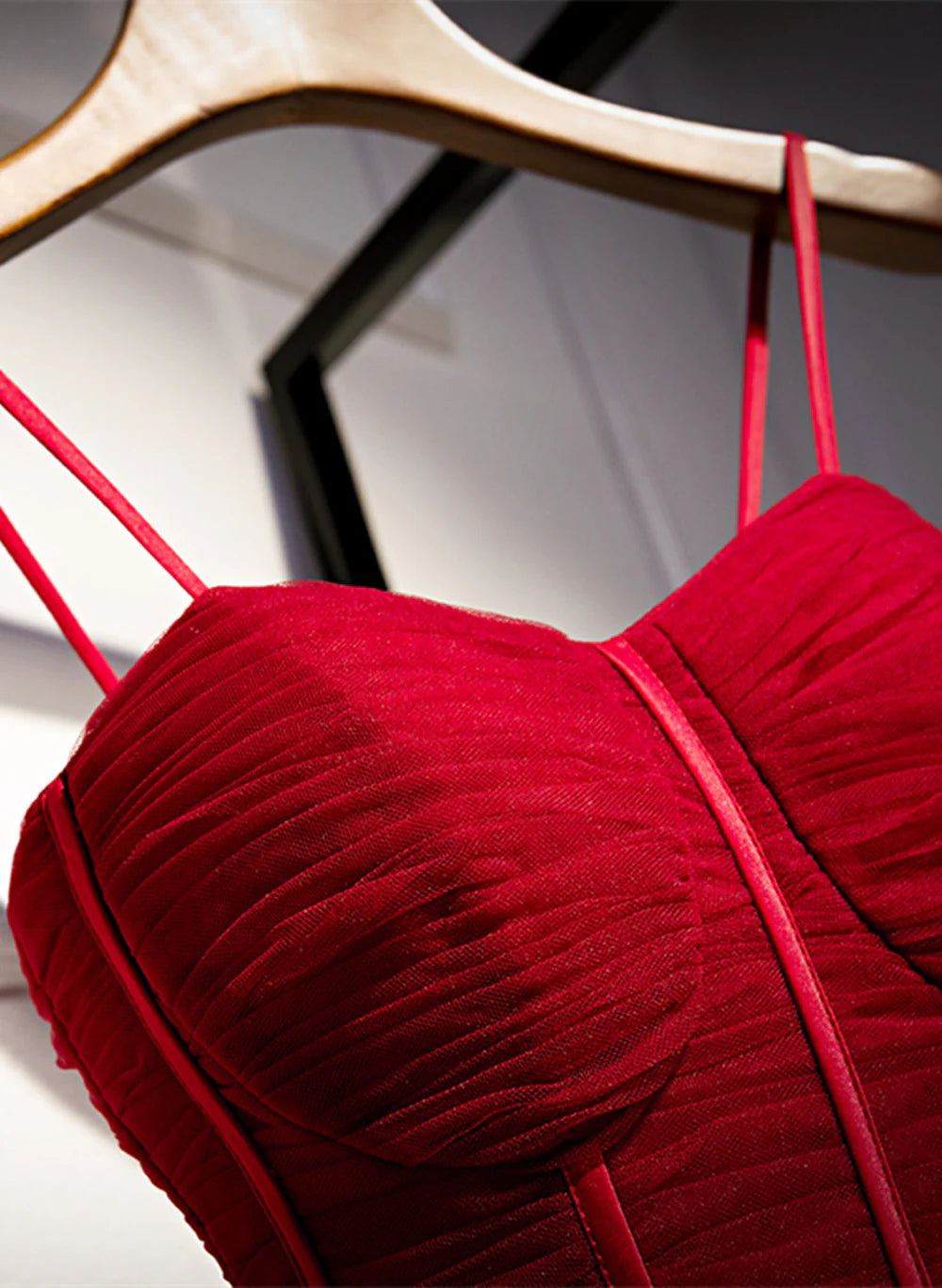 Red Sweetheart Simple A-line Tulle Prom Dress, Red Evening Dress Party Dress TP1301
