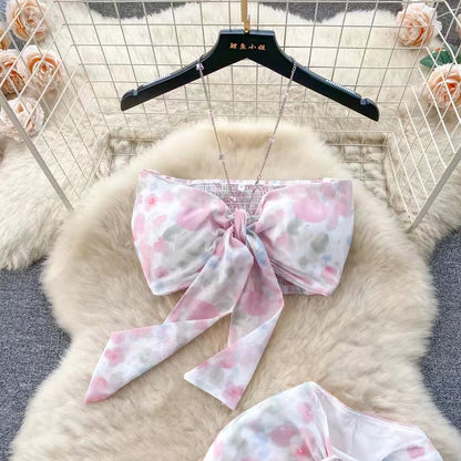 Seaside Holiday Sexy Halter top Mermaid Floral Skirt Two-piece Set TP2857
