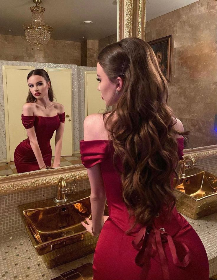 Sexy Burgundy Strapless Mermaid Long Prom Dresses TP1724