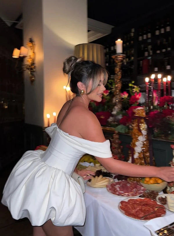 Sexy Ivory Satin Off-the-shoulder Sweetheart Short A-Line Party Dress Cocktail Dress Homecoming Dress TP4434