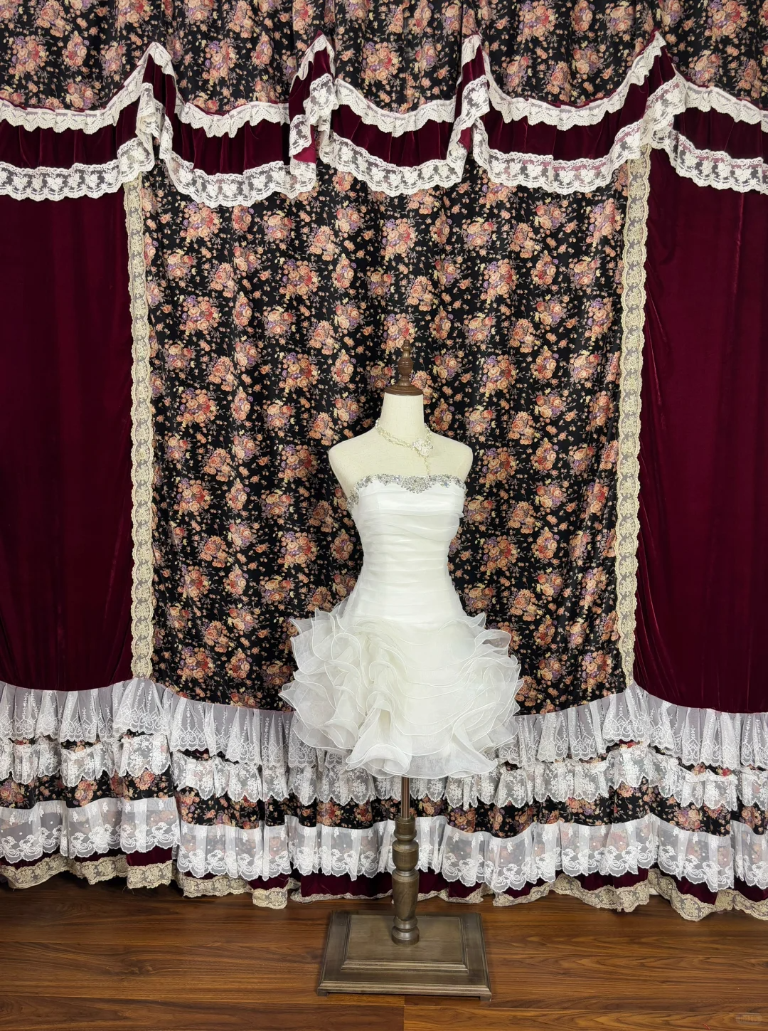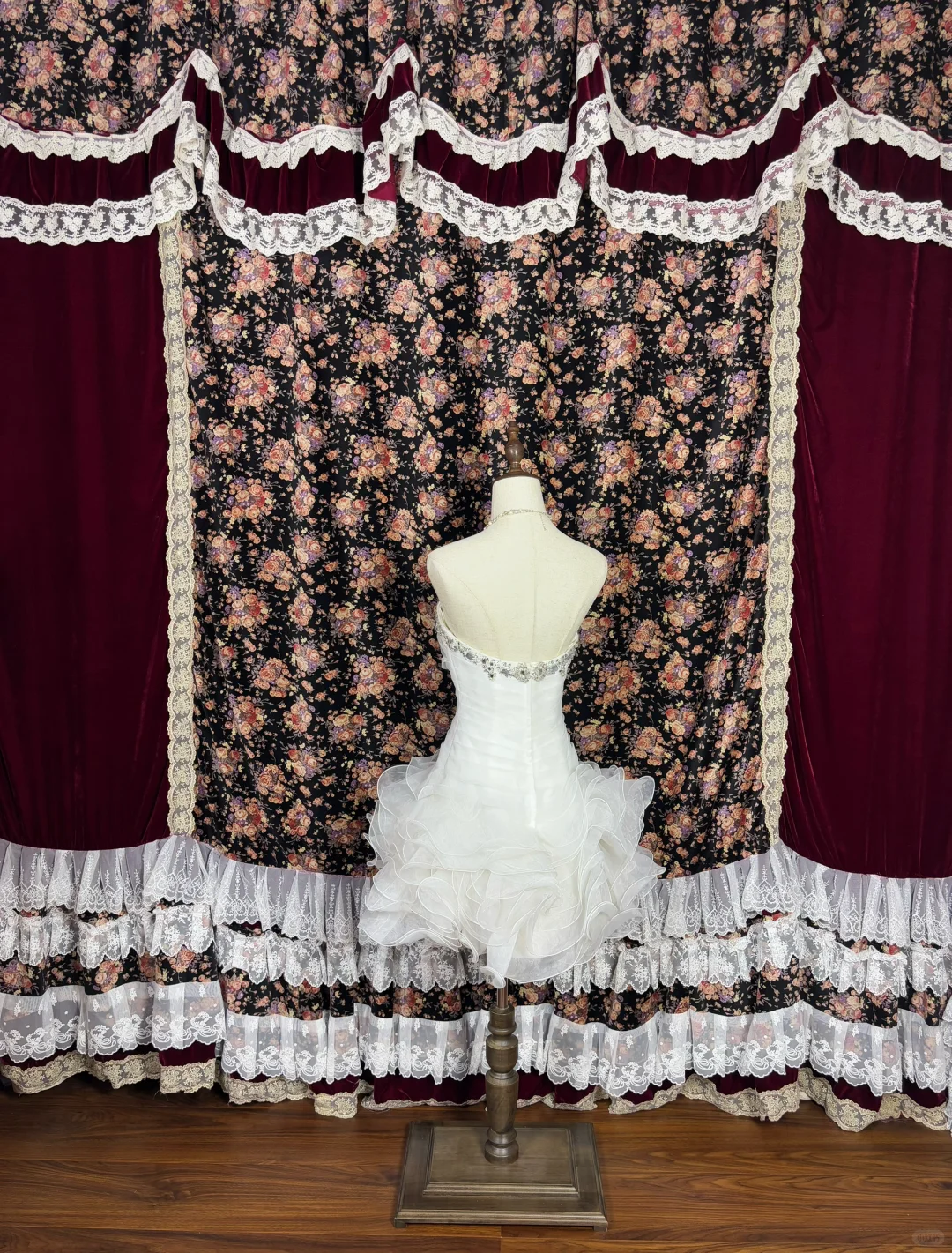 Shiny White Beaded Strapless A-Line Short Tiered Party Dress Homecoming Dress TP4392