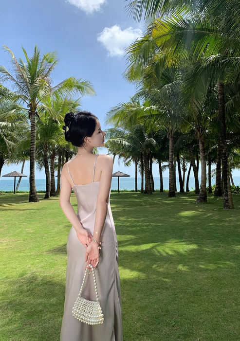 New Fashion Satin Design A-line Sleeveless Spaghetti Strap Dress TP3297