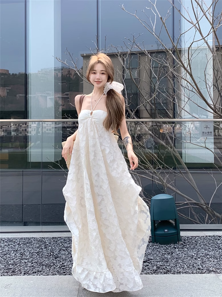 New Fashion Beige Design Beach Holiday A-line Halter Dress TP3310
