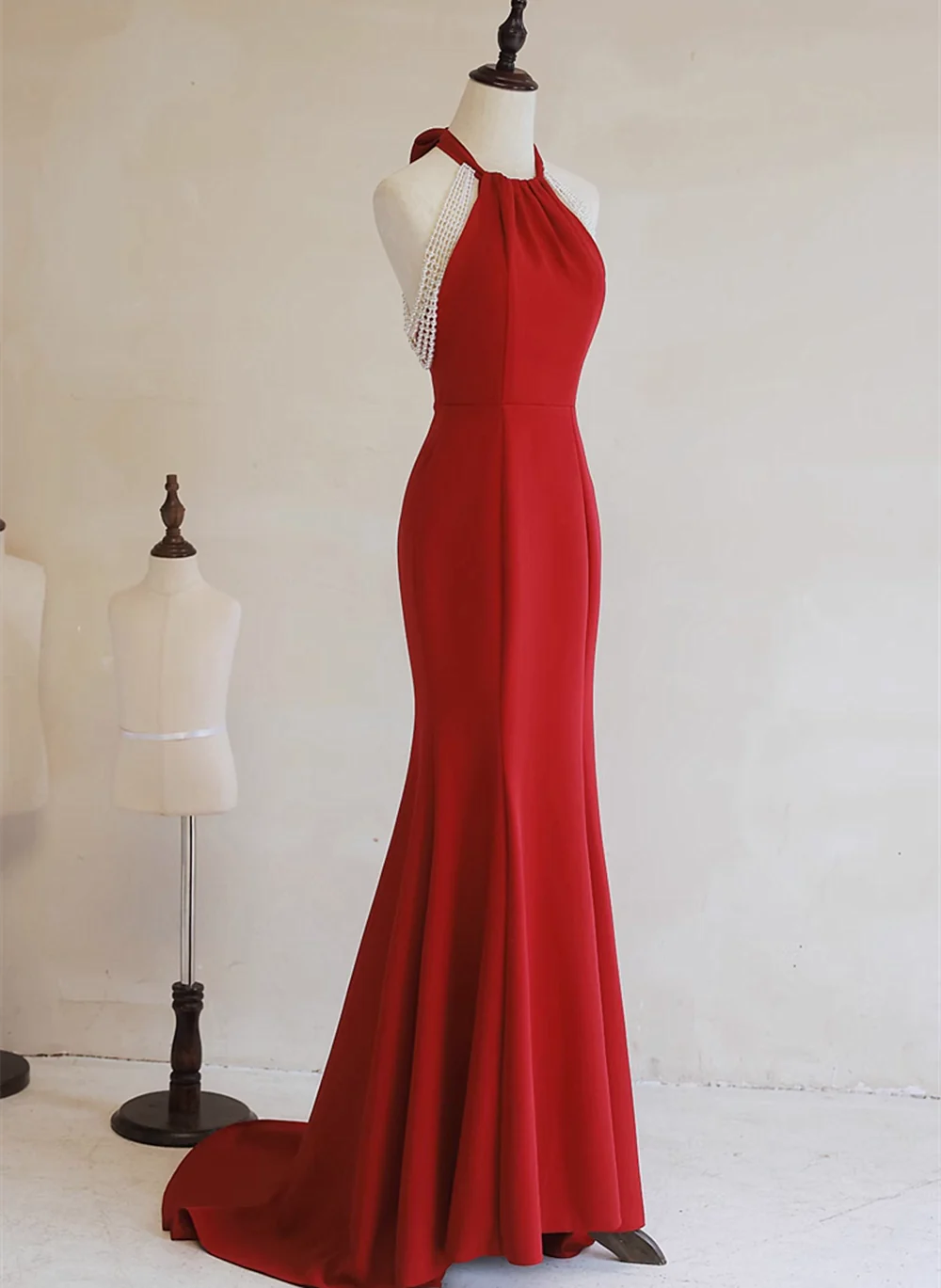 Simple Pretty Red Halter Mermaid Long Formal Dress, Red Long Evening Dress Prom Dress TP1246