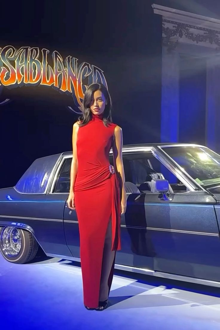 Soft Drape Red Turtleneck Sleeveless High Slit Floor Length Formal Prom Dress Evening Gown TP1940