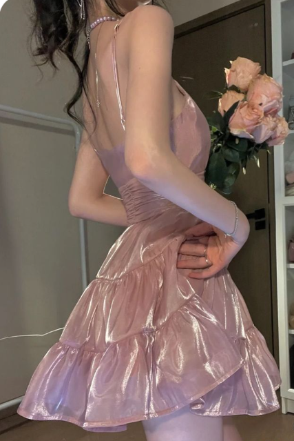 Sweet Pink A-line Spaghetti Strap Short Birthday Party Dress Homecoming Dress TP2075