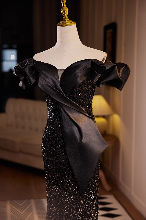 Vintage Black Off-Shoulder Sequin Mermaid Evening Gown TP5464