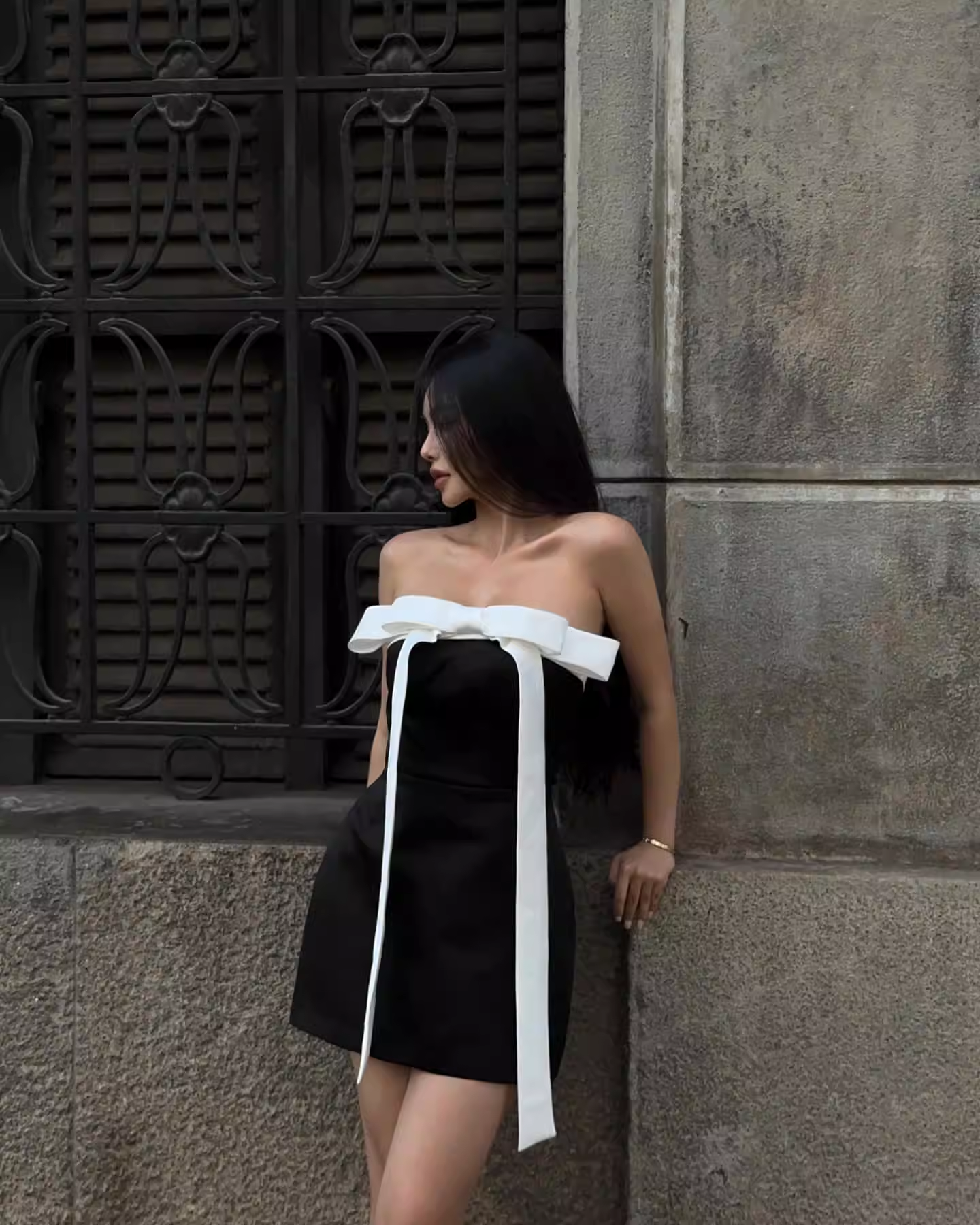Vintage Black Strapless Sheath Bow Design Mini Dress Homecoming Dress Party Dress Short Cocktail Dress TP5185