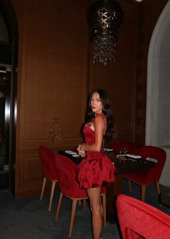 Vintage Burgundy Satin Spaghetti Strap Short A-Line Party Dress Cocktail Dress Homecoming Dress TP4435