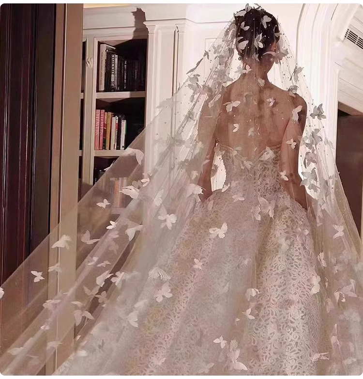 Vintage Elegant White Butterfly Pearl Design Style Long Wedding Veil TP3163