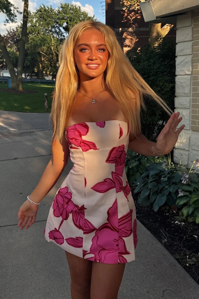 Vintage Floral Strapless Sheath Homecoming Dress Party Dress Cocktail Dress TP4707