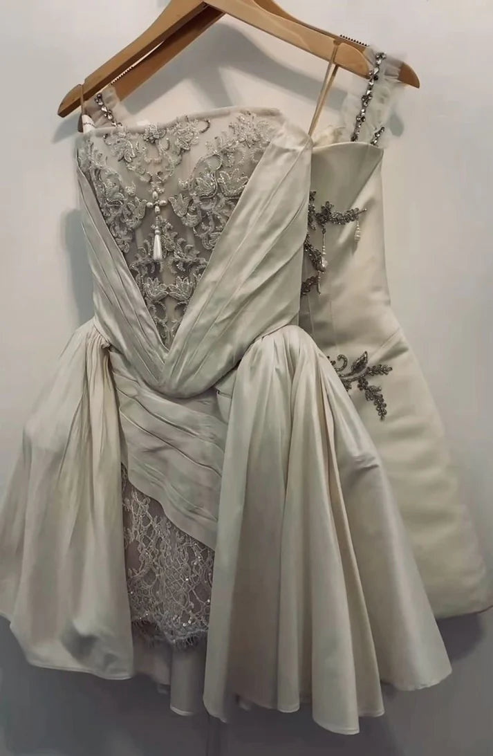 Vintage Ivory Applique Strapless A-Line Short Party Dress Cocktail Dress Homecoming Dress TP4465