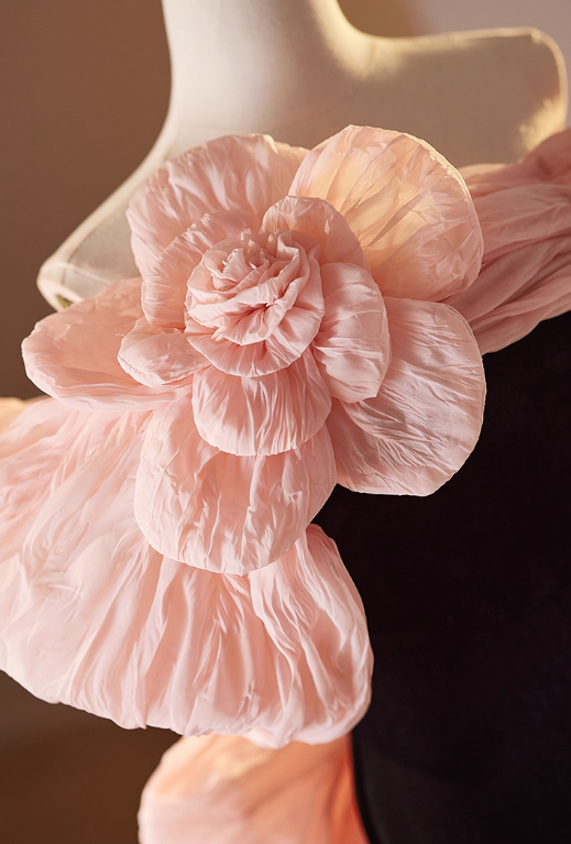 Vintage Off-Shoulder 3D Flower Mermaid Ruffled Cape Evening Gown TP5463