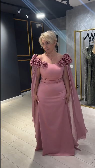 Vintage Pink 3D Flowers Sheath Cape Sleeves Long Mother of Bride Dress TP5062