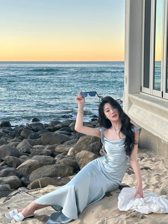 Vintage Sage Green Ruffle Mermaid Satin Long Prom Dress Party Dress Evening Dress TP4495