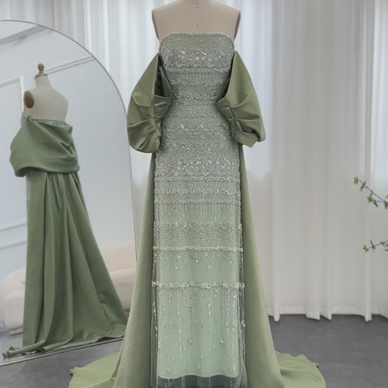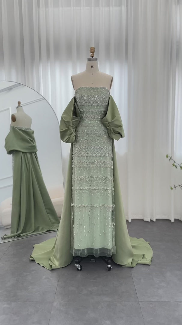 Vintage Shiny Beaded Strapless Sheath Cape Design Long Prom Dress Evening Dress TP4566