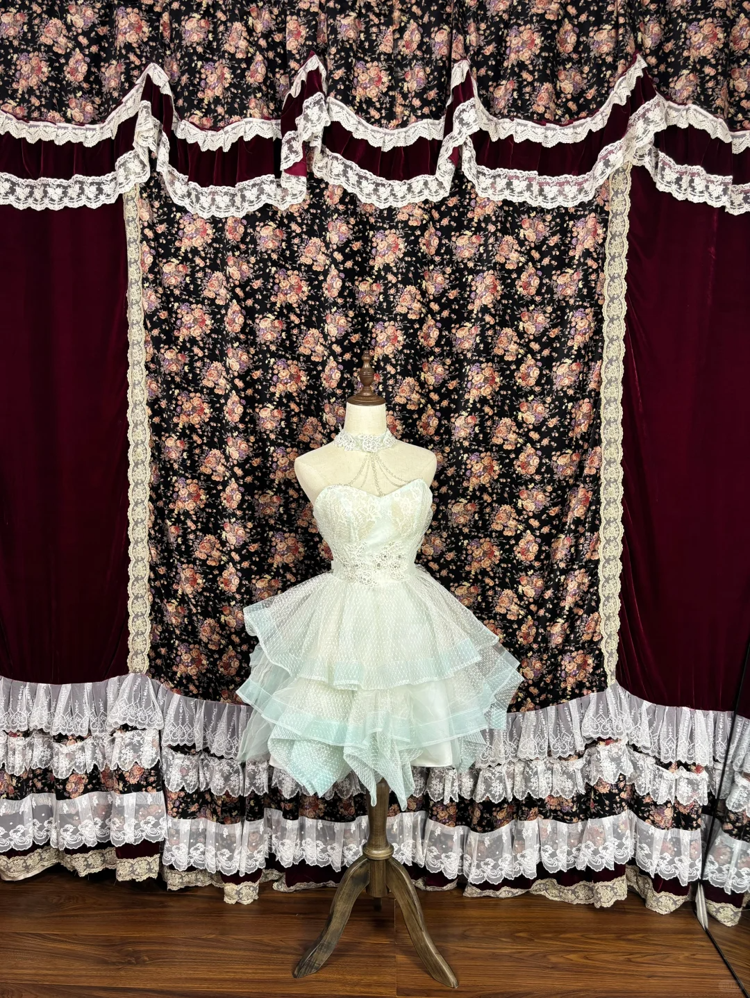 Vintage Sweetheart Applique Beaded Strapless A-Line Elegant Chiffon Tiered Homecoming Dress Evening Dress Prom Dresses TP4140
