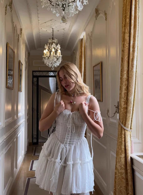 Vintage White Lace Spaghetti Strap A-Line Short Tiered Party Dress Cocktail Dress Homecoming Dress TP4473